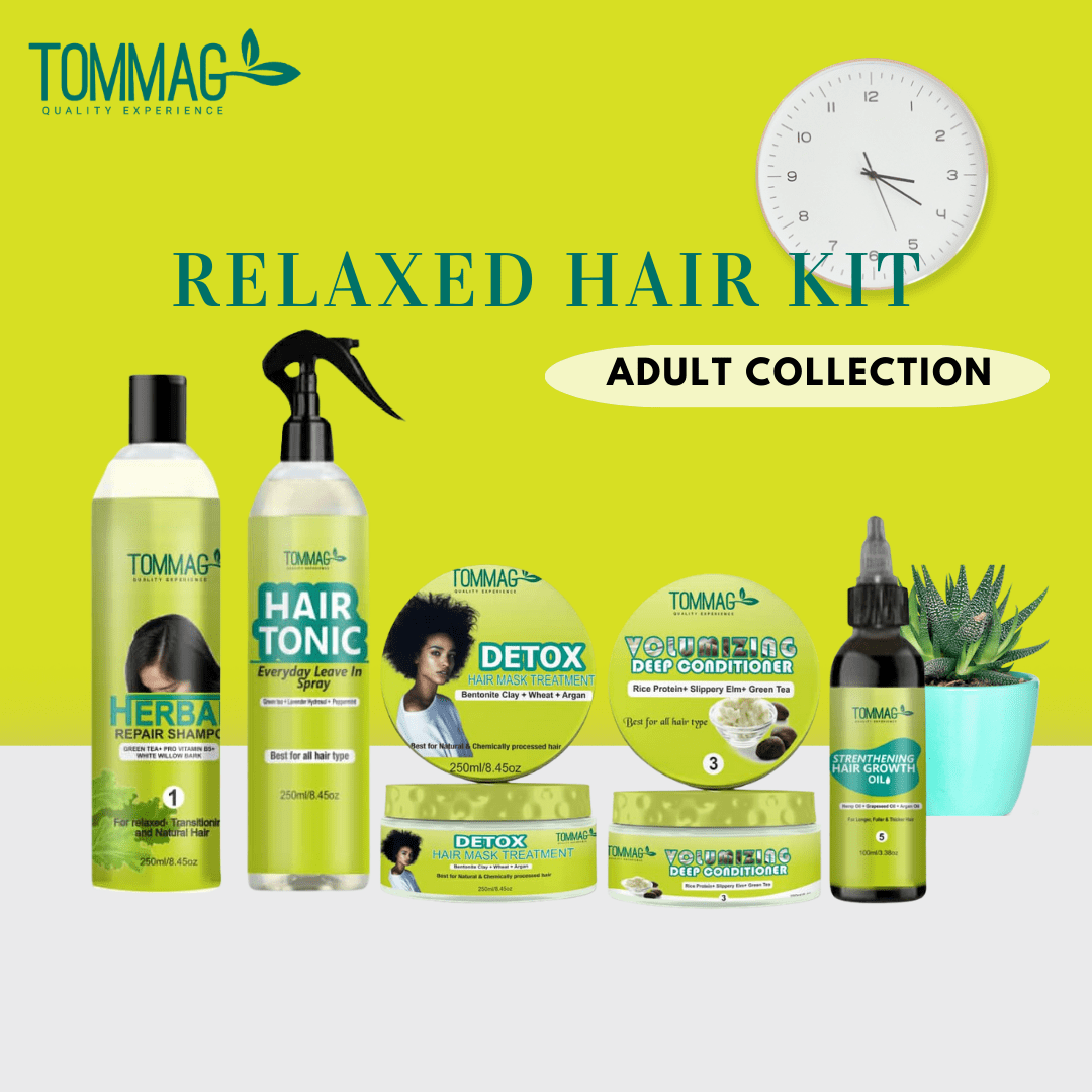Our Relaxed Hair Kit is carefully combined to meet the unique needs of chemically relaxed hair, helping to restore strength, moisture, and balance after relaxing treatments. This complete haircare system works to reduce dryness, breakage, and thinning, while keeping relaxed hair soft, smooth, and manageable.